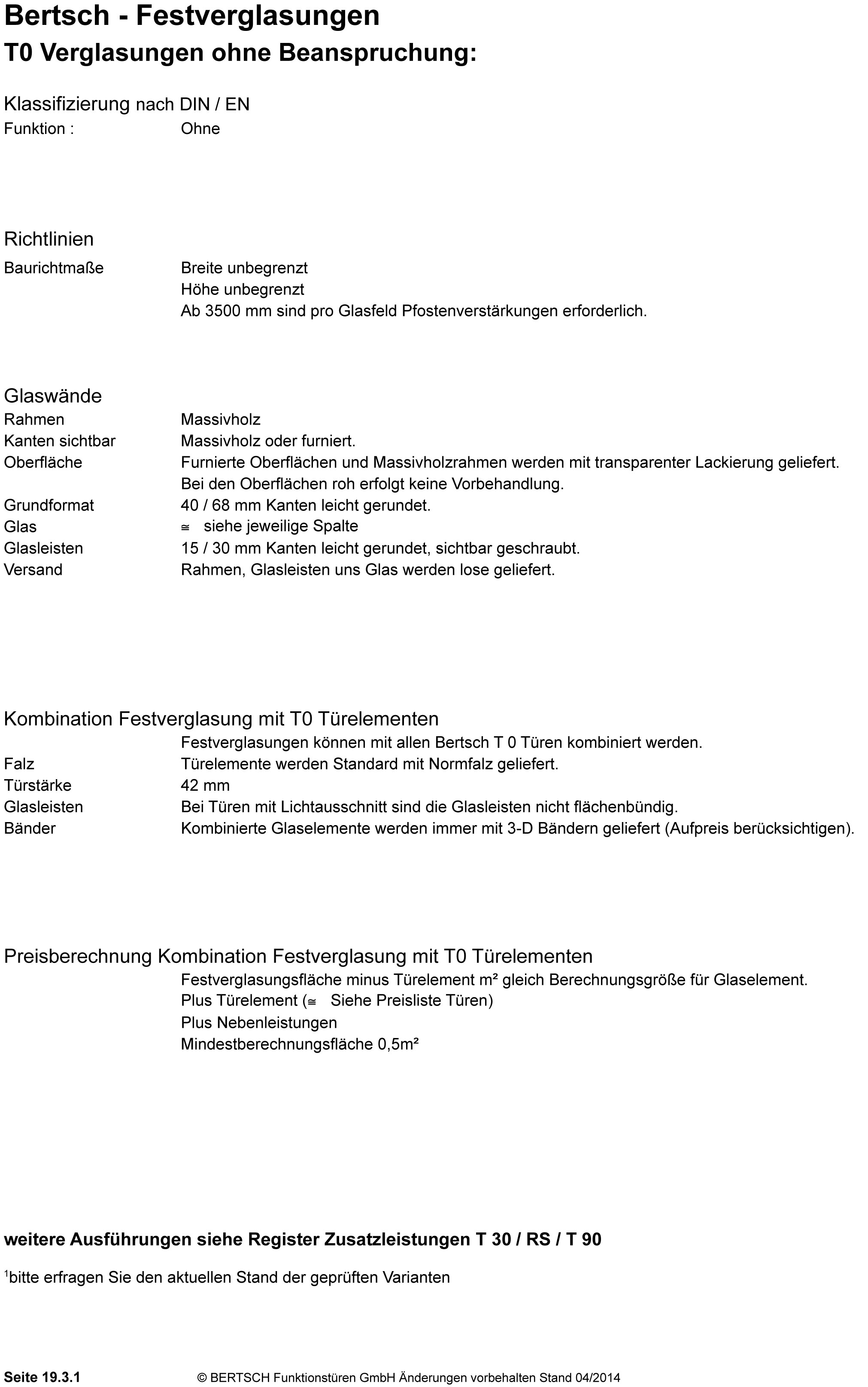 TO Verglasungen ohne Beanspruchung