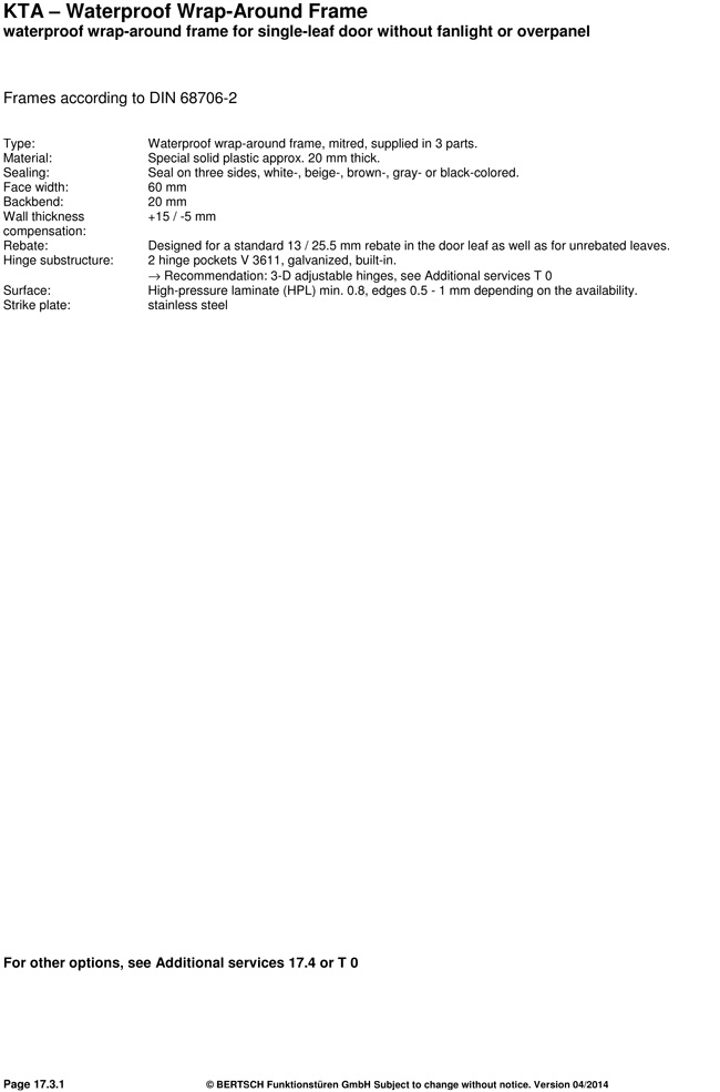 KTA – Waterproof Wrap-Around Frame waterproof wrap-around frame for single-leaf door without fanlight or overpanel