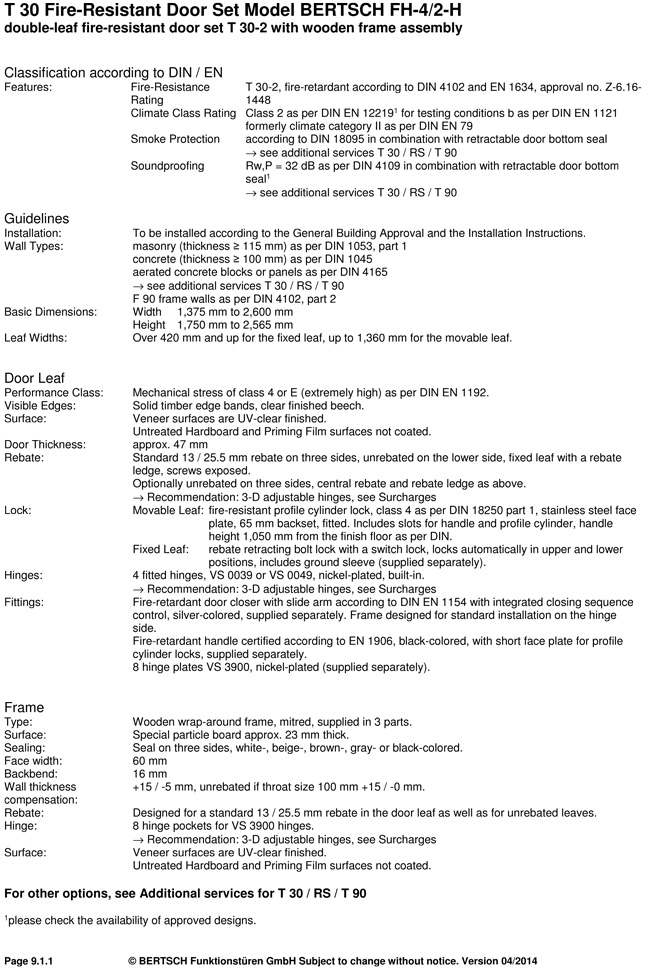 T 30 Fire-Resistant Door Set Model BERTSCH FH-4/2-H double-leaf fire-resistant door set T 30-2 with wooden frame assembly