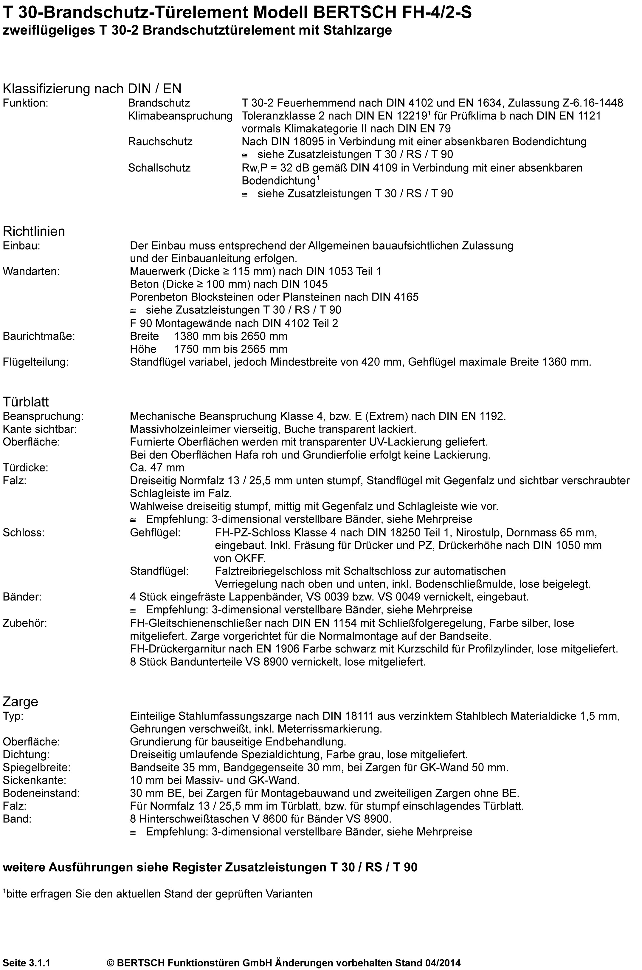 zweiflügeliges T 30-2 Brandschutztürelement mit Stahlzarge