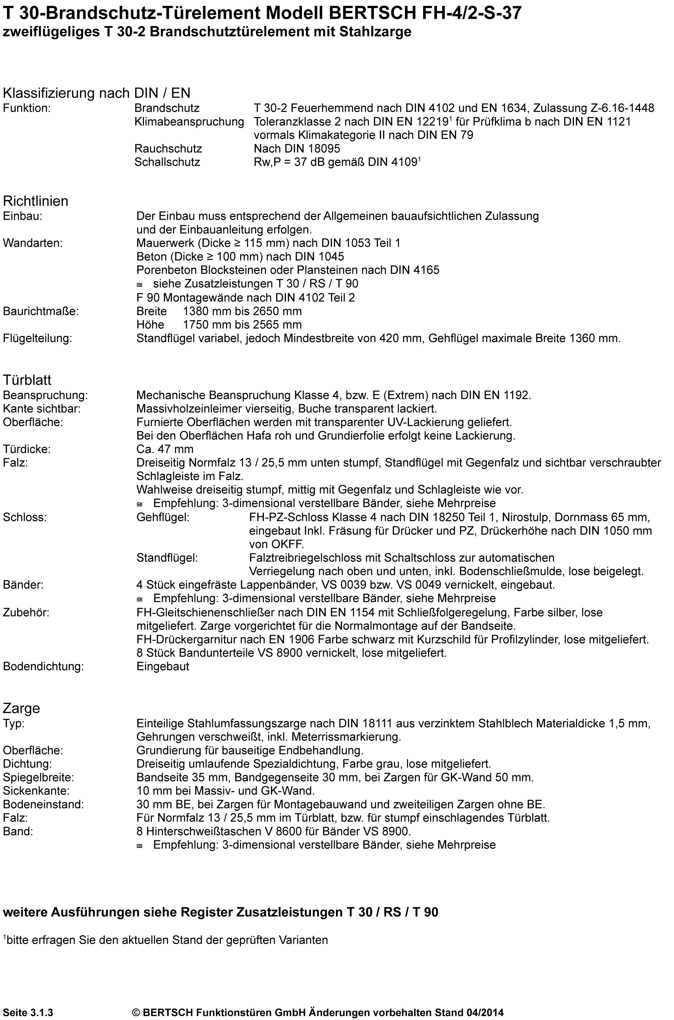 zweiflügeliges T 30-1 Brandschutztürelement mit Stahlzarge
