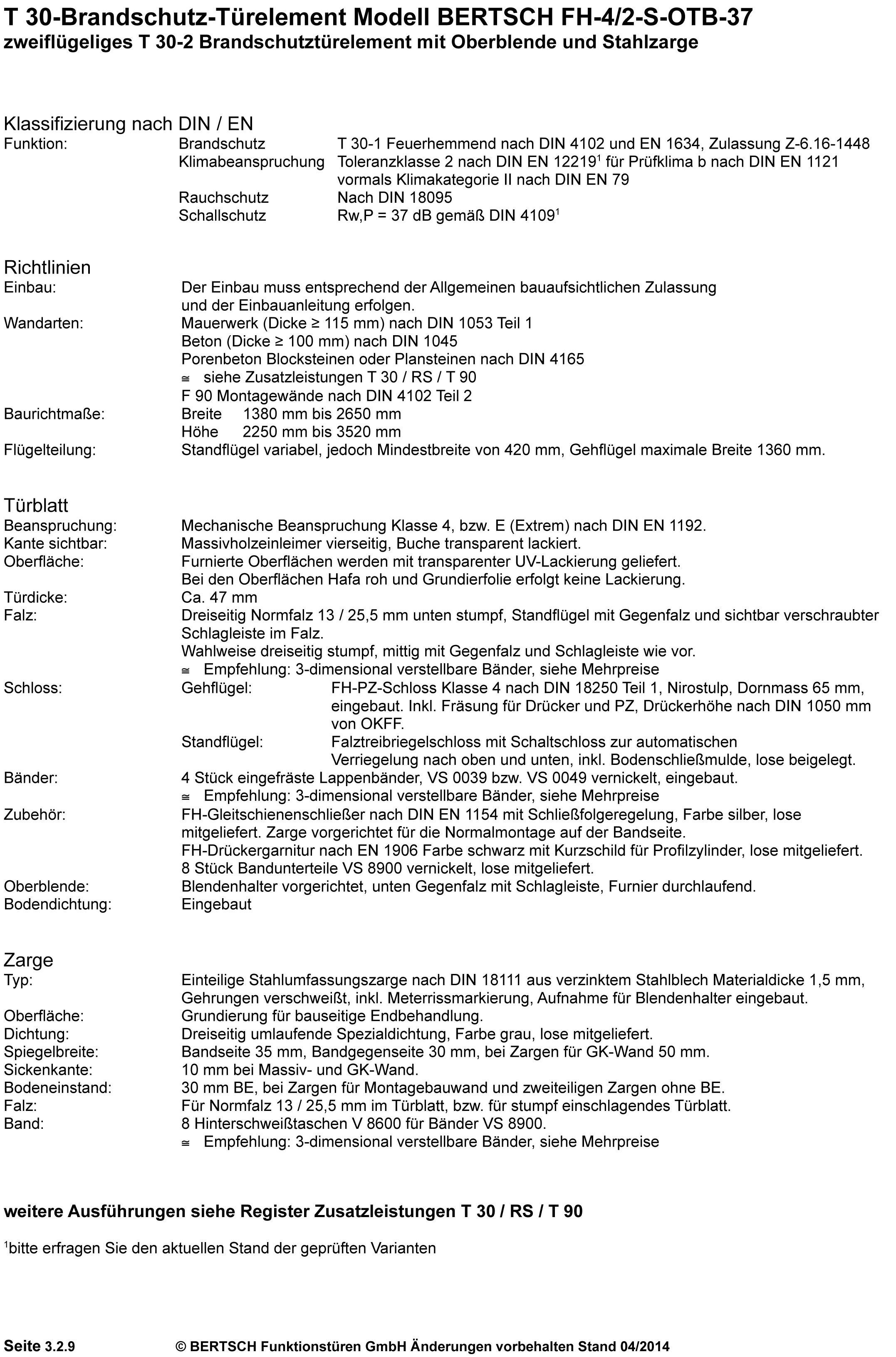zweiflügeliges T 30-1 Brandschutztürelement mit Stahlzarge