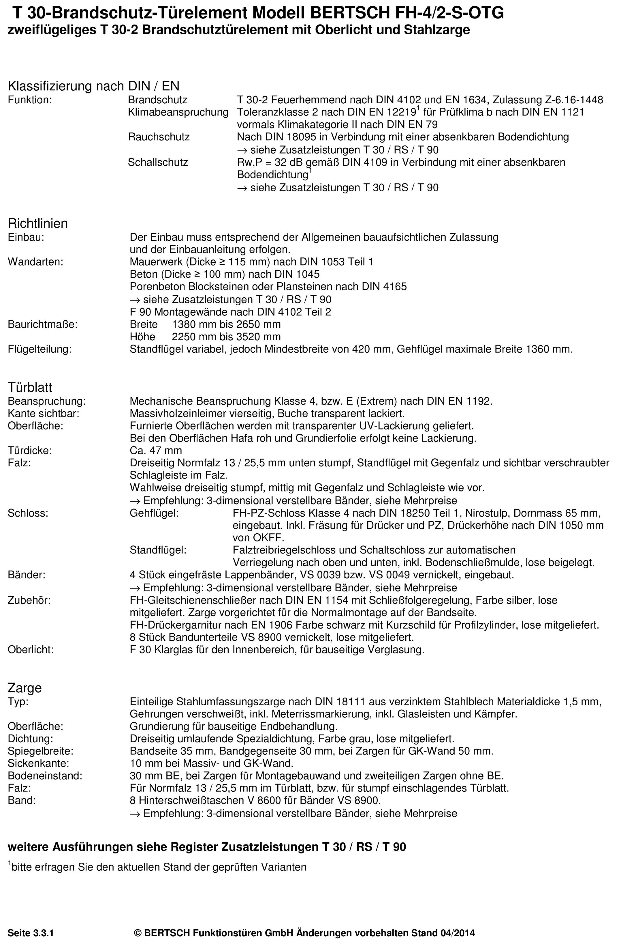 zweiflügeliges T 30-1 Brandschutztürelement mit Stahlzarge