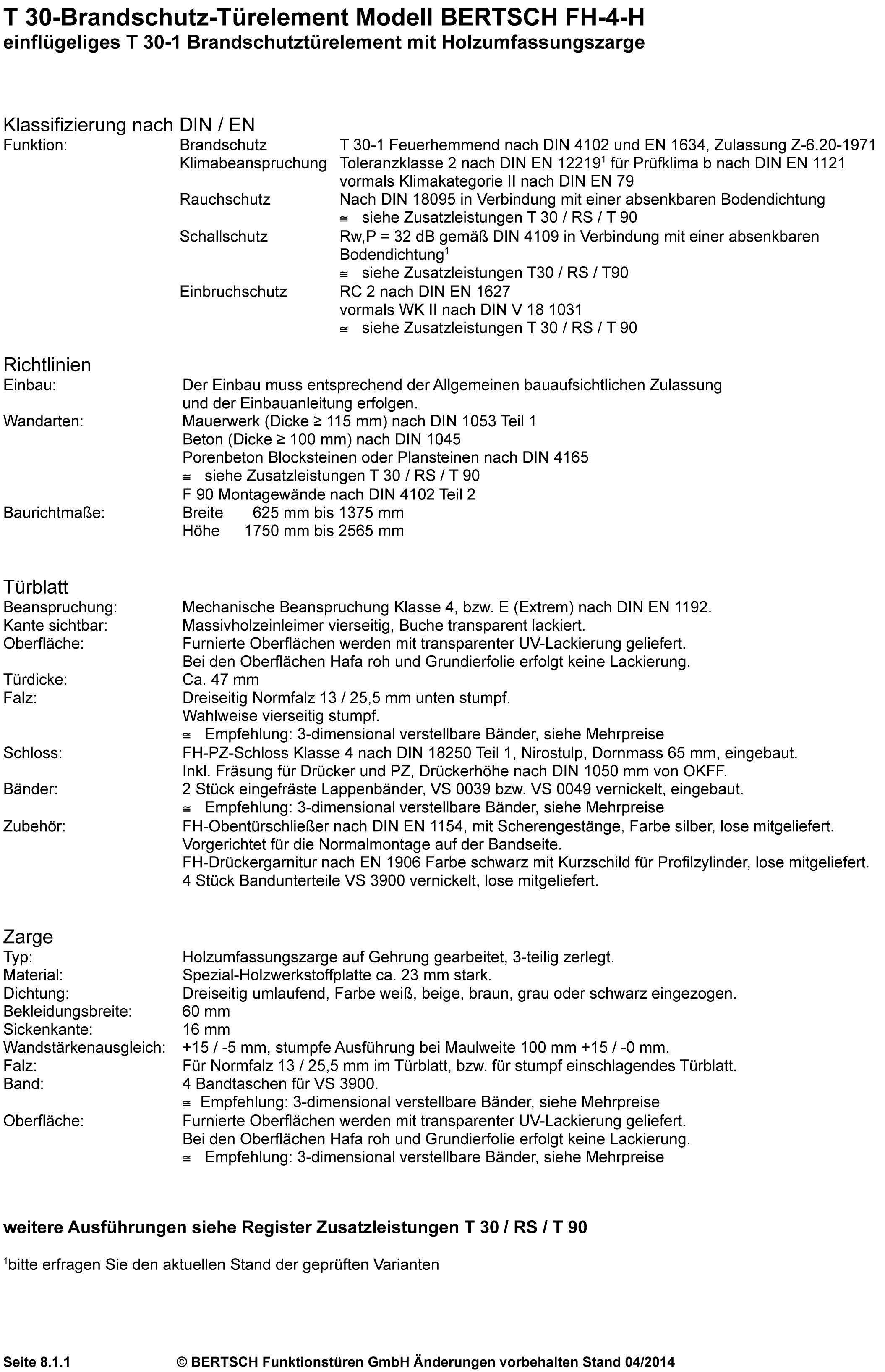 einflügeliges T 30-1 Brandschutztürelement mit Holzumfassungszarge