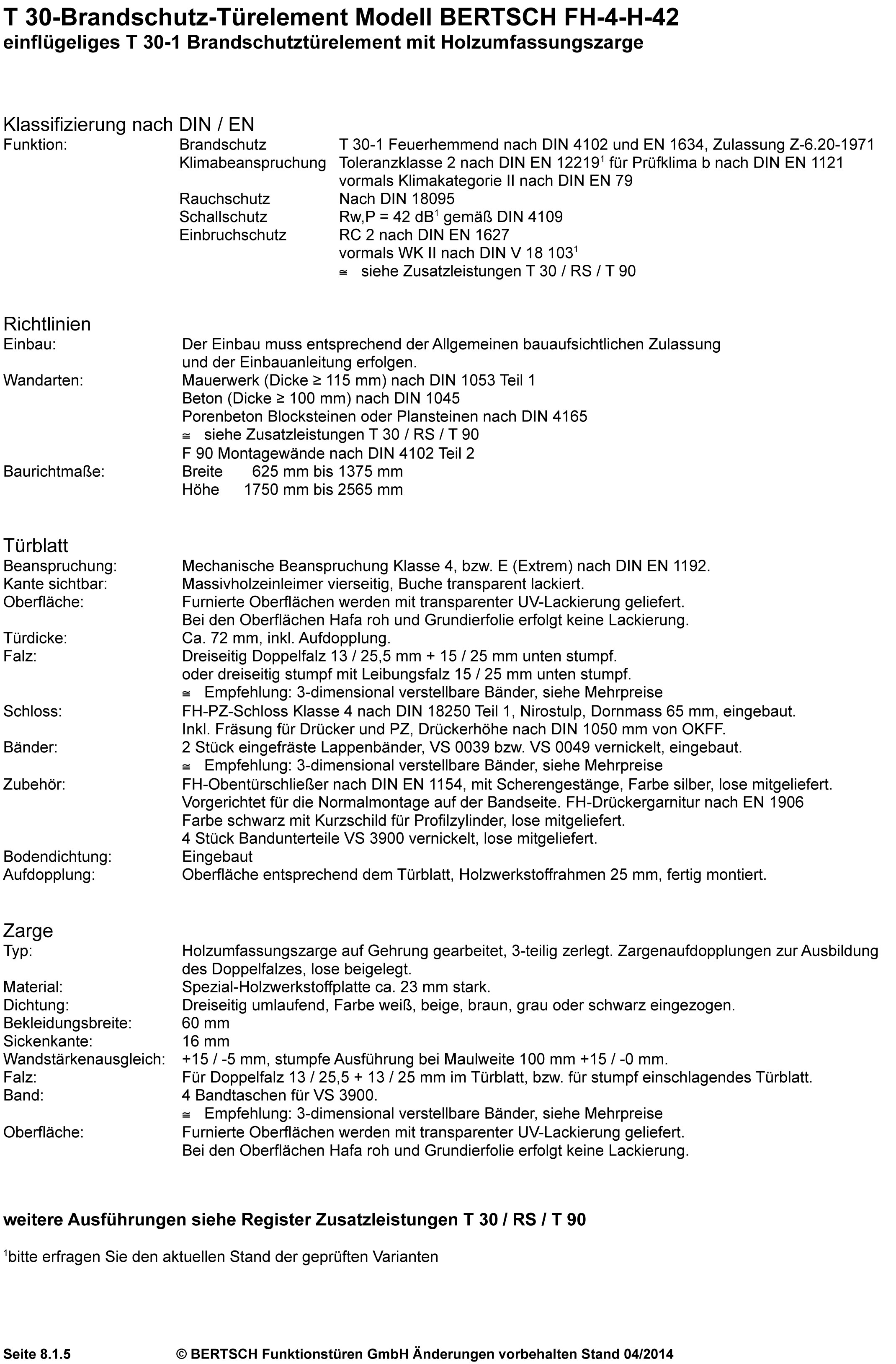 einflügeliges T 30-1 Brandschutztürelement mit Holzumfassungszarge