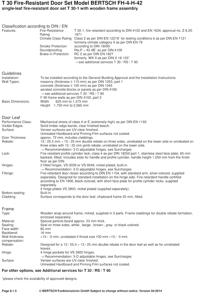 T 30 Fire-Resistant Door Set Model BERTSCH FH-4-H-42 single-leaf fire-resistant door set T 30-1 with wooden frame assembly