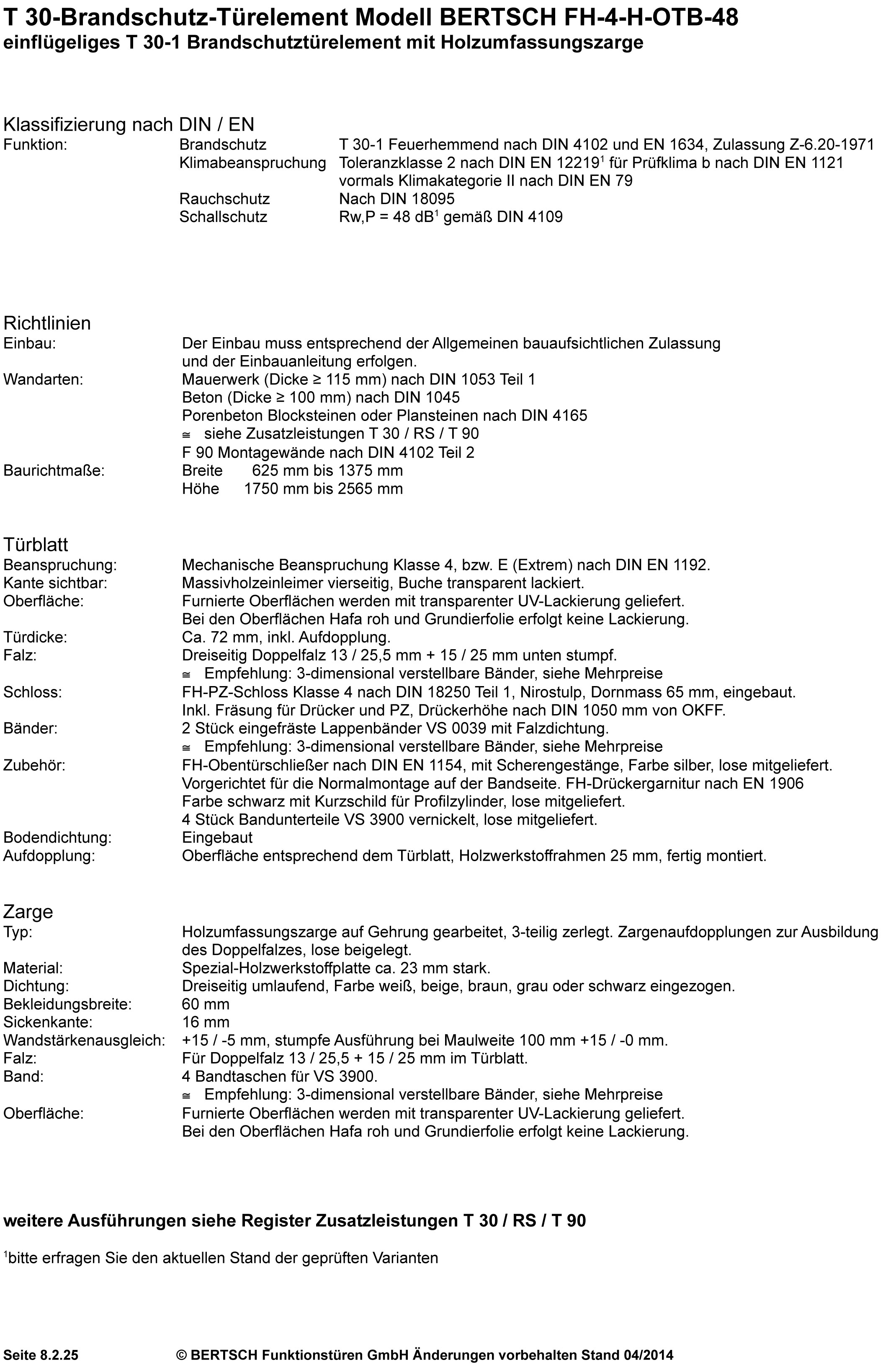 einflügeliges T 30-1 Brandschutztürelement mit Holzumfassungszarge