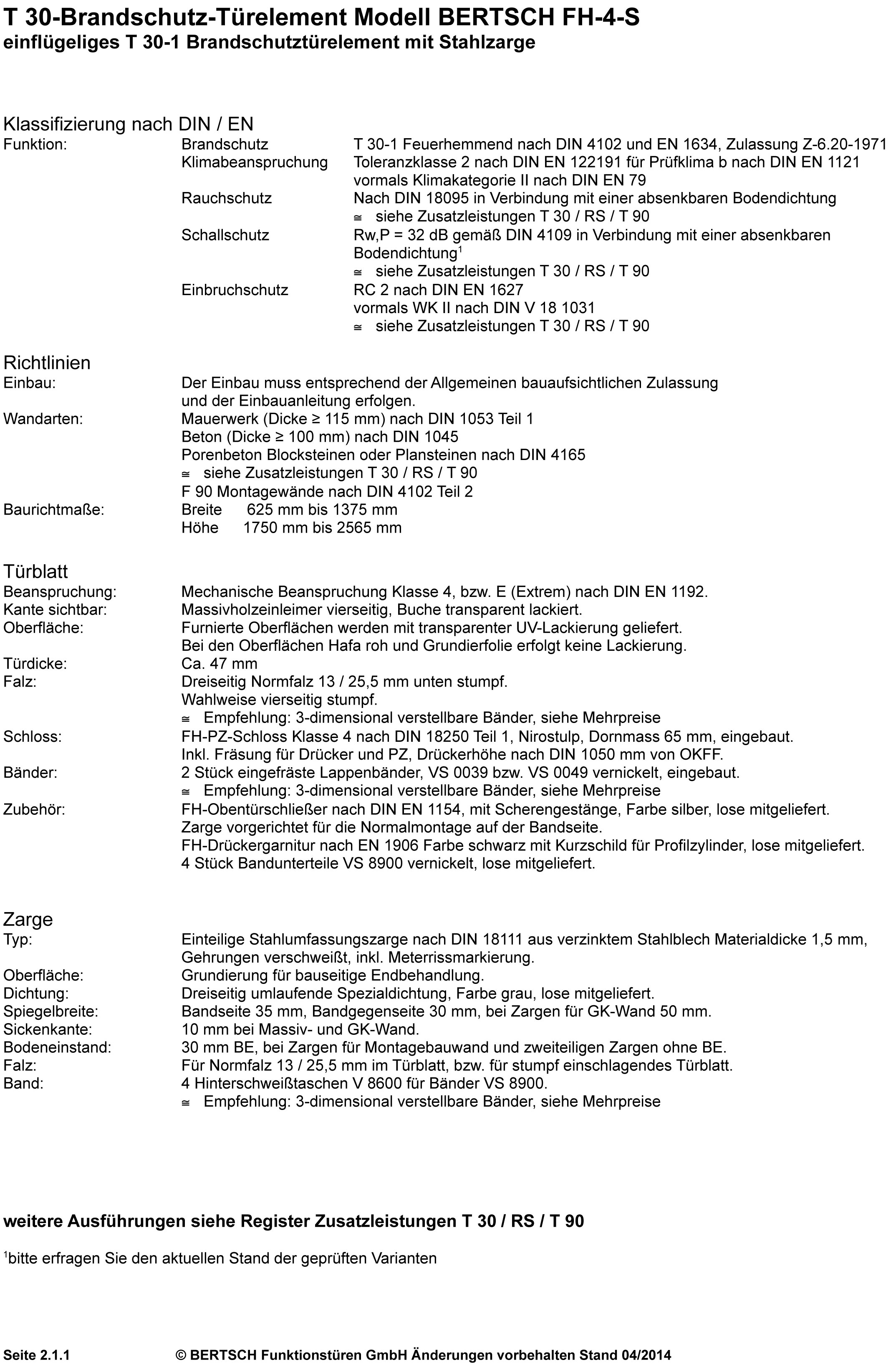 einflügeliges T 30-1 Brandschutztürelement mit Stahlzarge