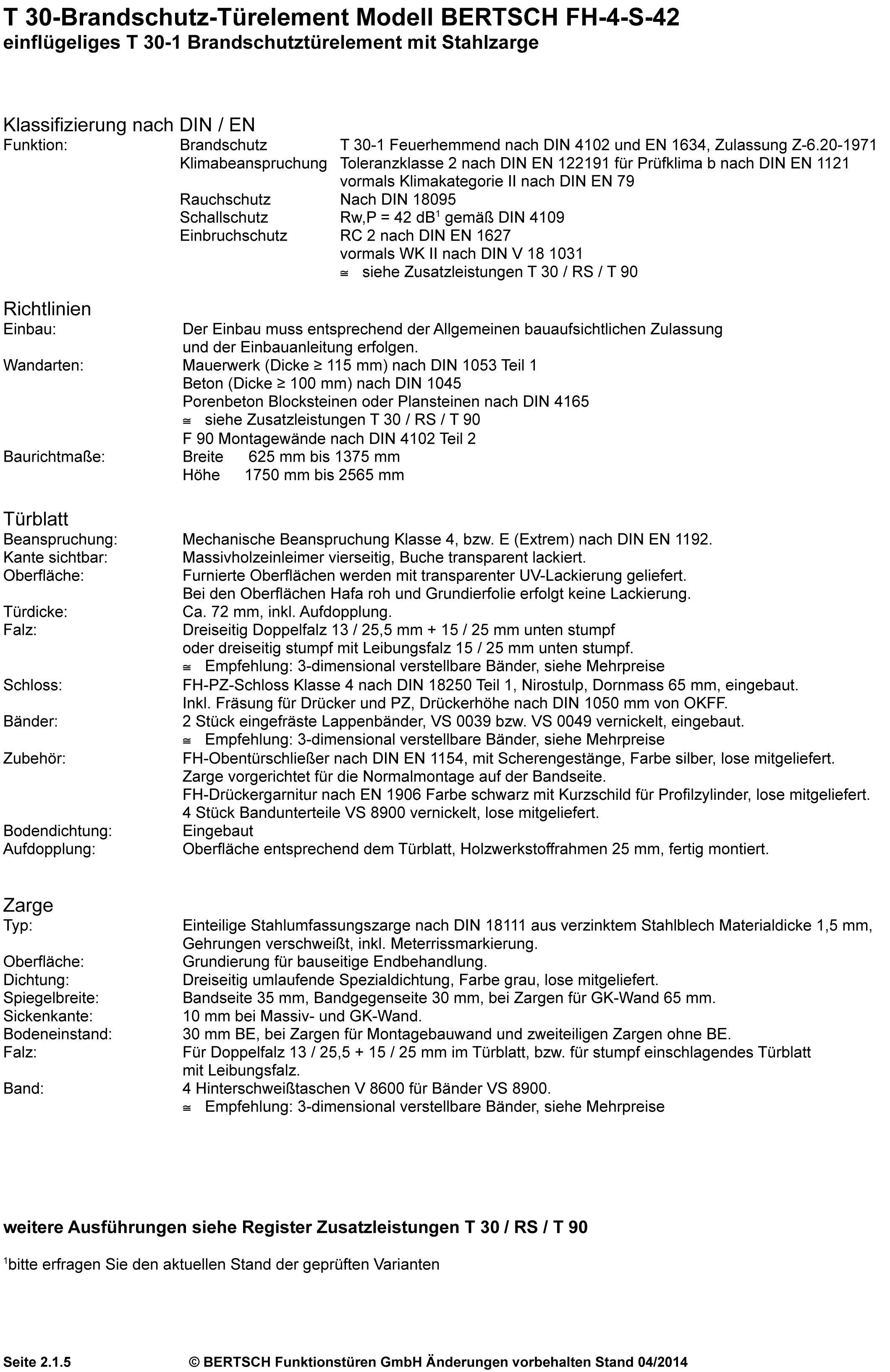 einflügeliges T 30-1 Brandschutztürelement mit Stahlzarge