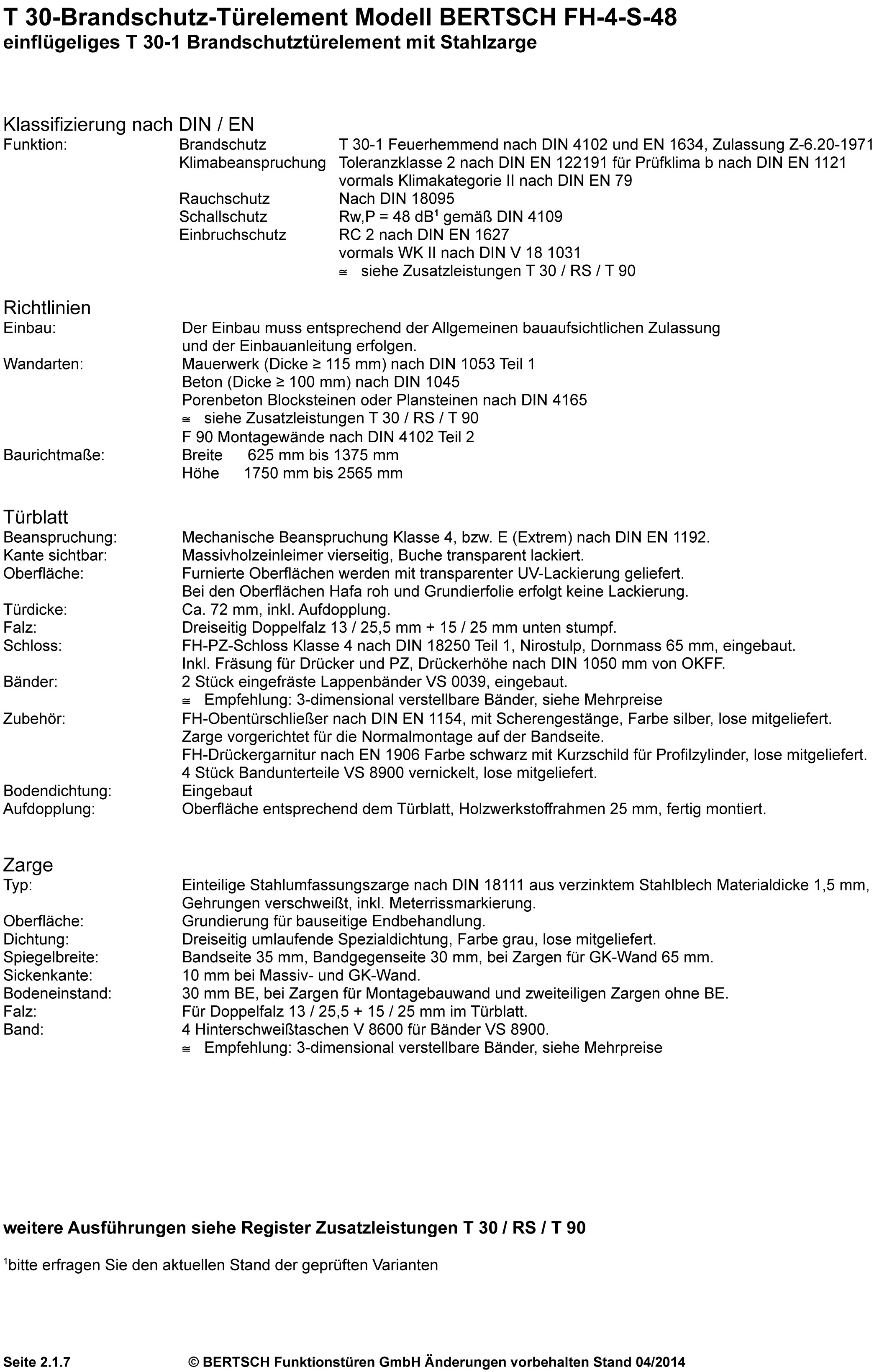 einflügeliges T 30-1 Brandschutztürelement mit Stahlzarge