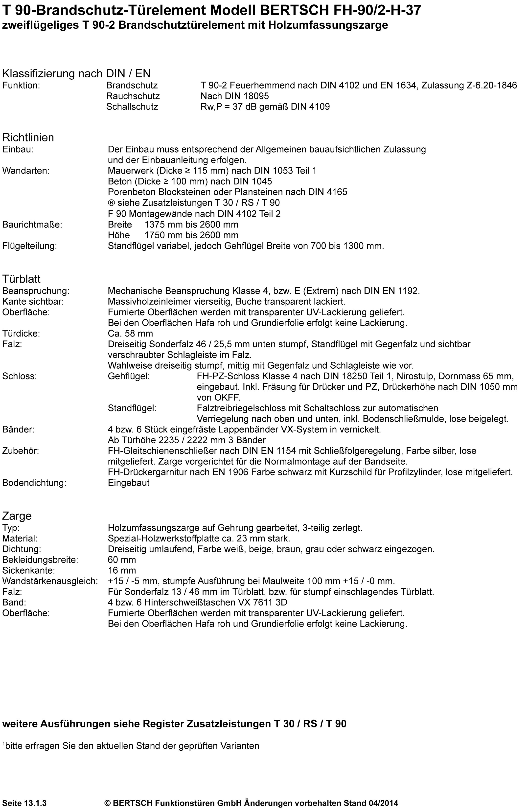 zweiflügeliges T 90-2 Brandschutztürelement mit Holzumfassungszarge