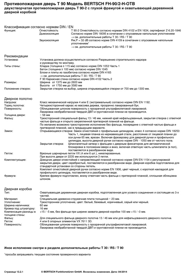 Противопожарная дверь T 90 Модель BERTSCH FH-90/2-H-OTB