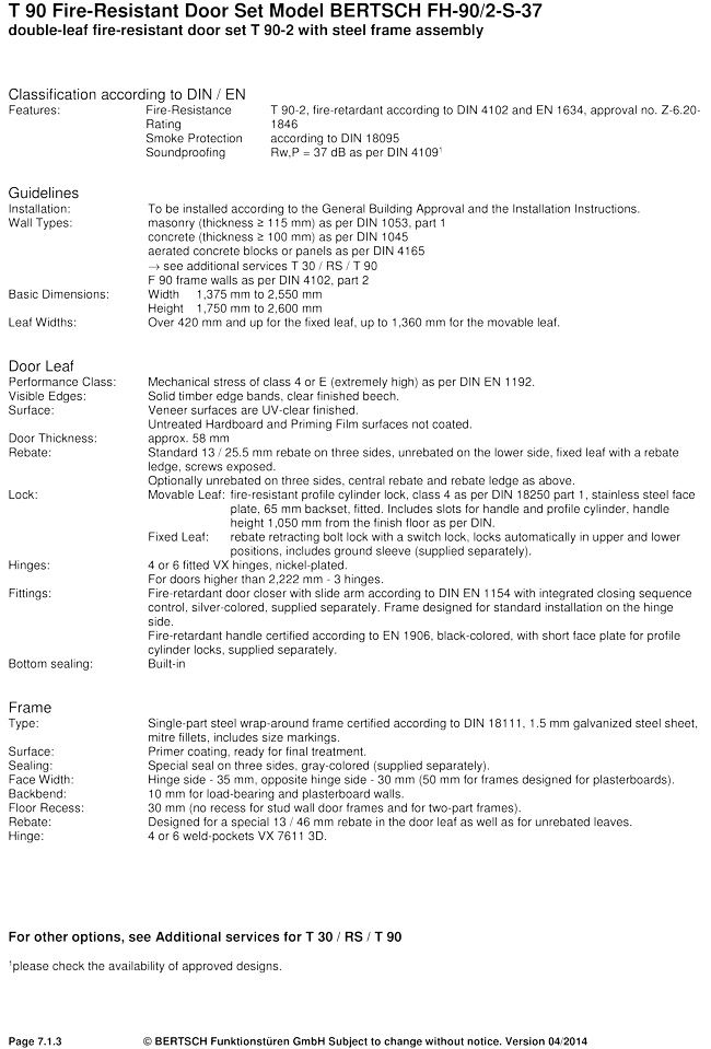 T 90 Fire-Resistant Door Set Model BERTSCH FH-90/2-S-37 double-leaf fire-resistant door set T 90-2 with steel frame assembly