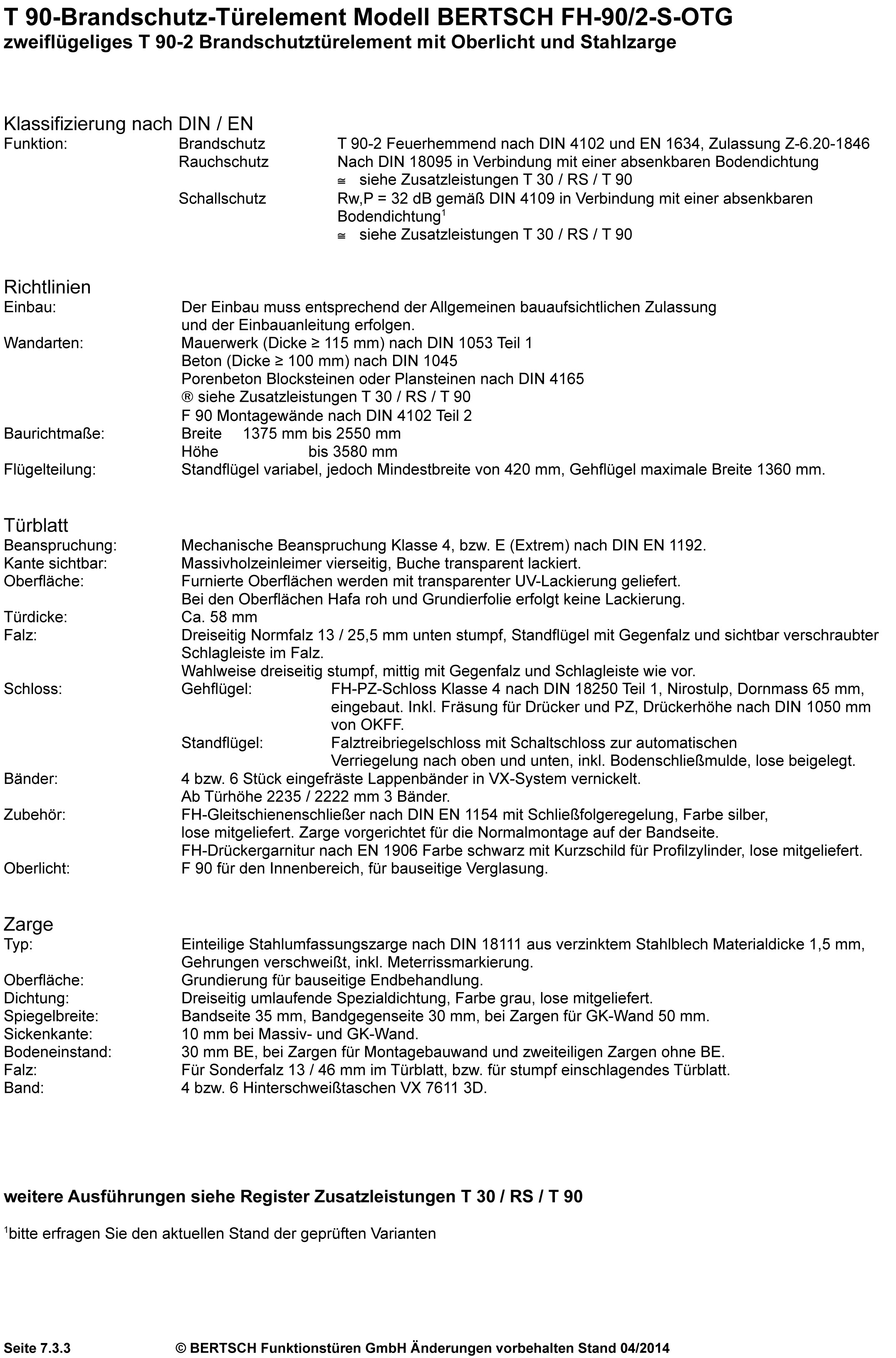 Modell Bertsch FH-90/2-S-OTG-37 zweiflügeliges T 90-2 Brandschutztürelement mit Oberlicht und Stahlzarge