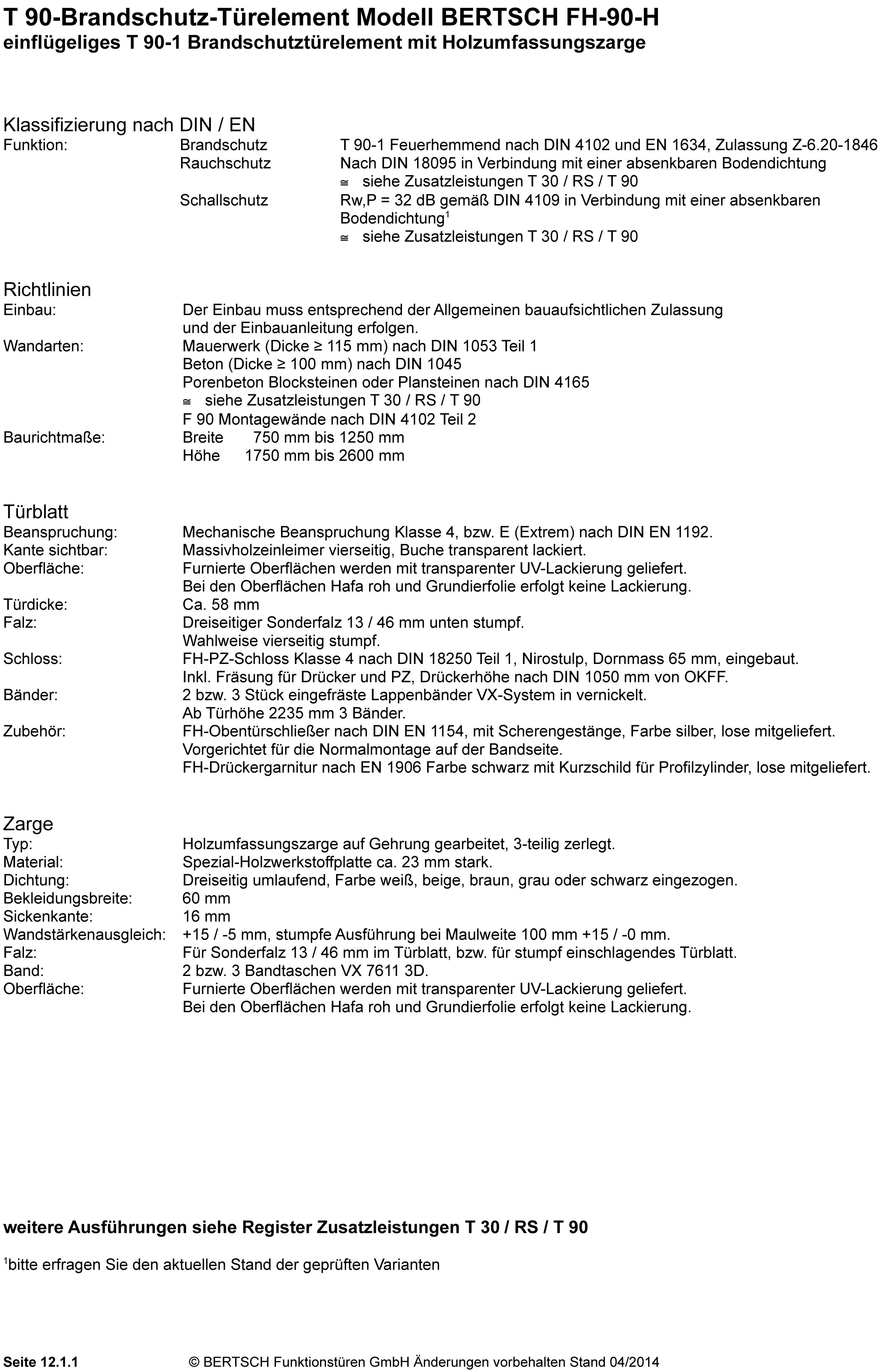 einflügeliges T 90-1 Brandschutztürelement mit Holzerfassungszarge