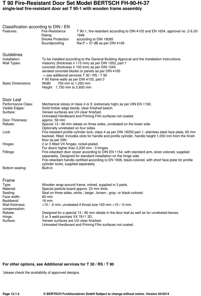 T 90 Fire-Resistant Door Set Model BERTSCH FH-90-H-37 single-leaf fire-resistant door set T 90-1 with wooden frame assembly