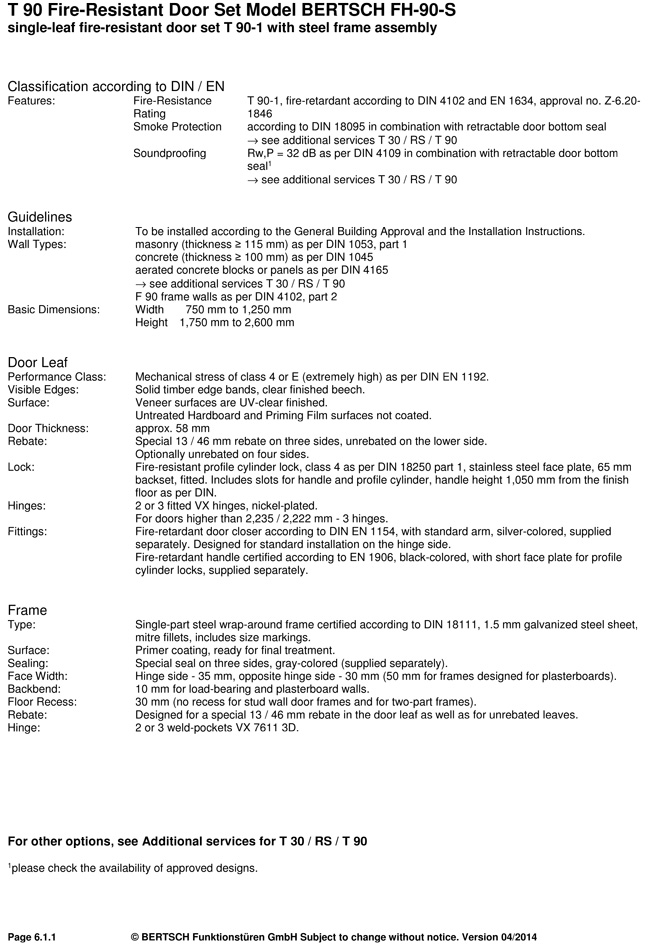 T 90 Fire-Resistant Door Set Model BERTSCH FH-90-S single-leaf fire-resistant door set T 90-1 with steel frame assembly