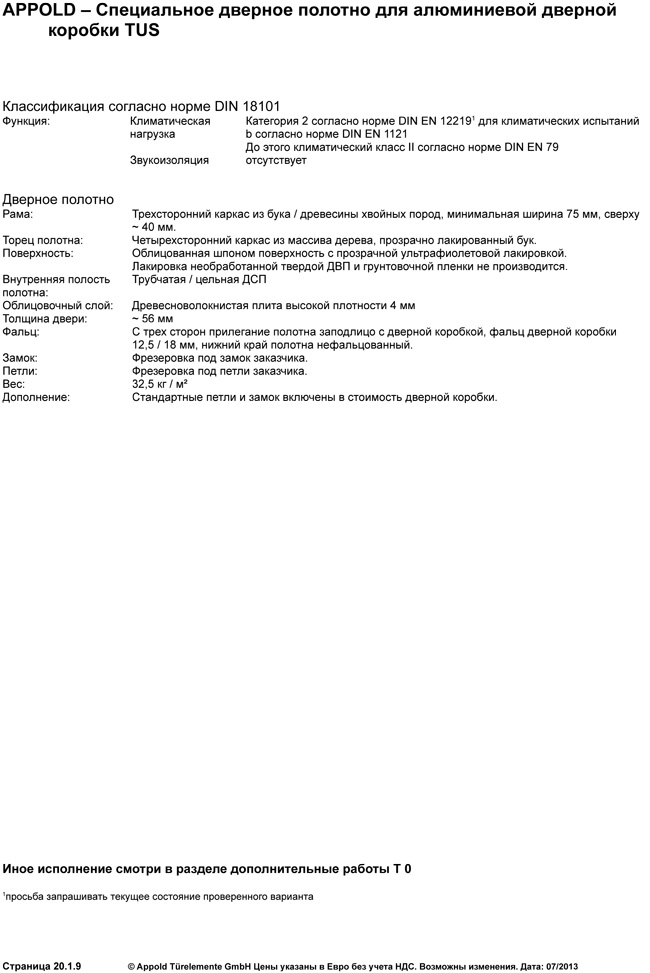 APPOLD – Специальное дверное полотно для алюминиевой дверной коробки TUS