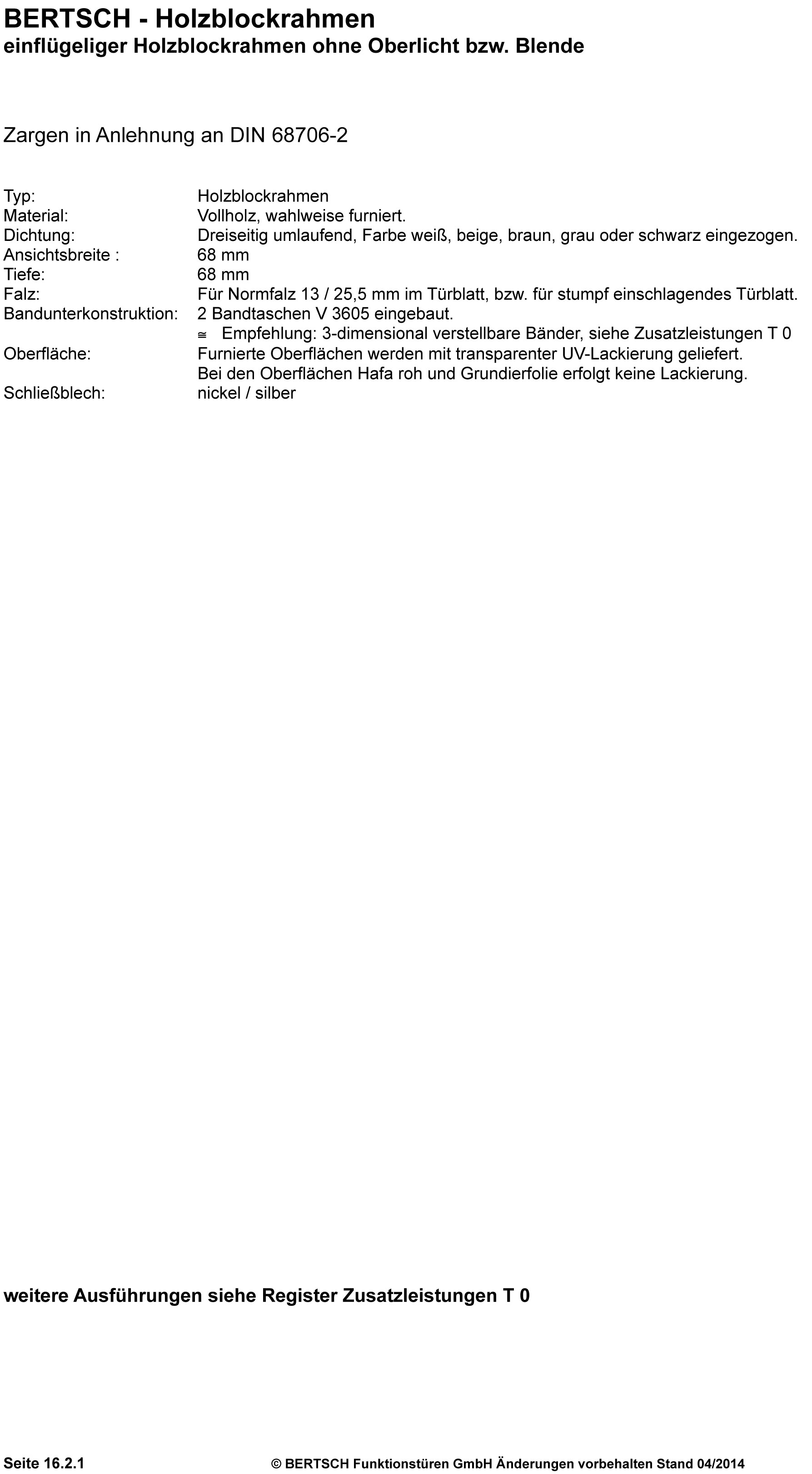 einflügeliges Holzblockrahmen ohne Oberlicht bzw. Blende