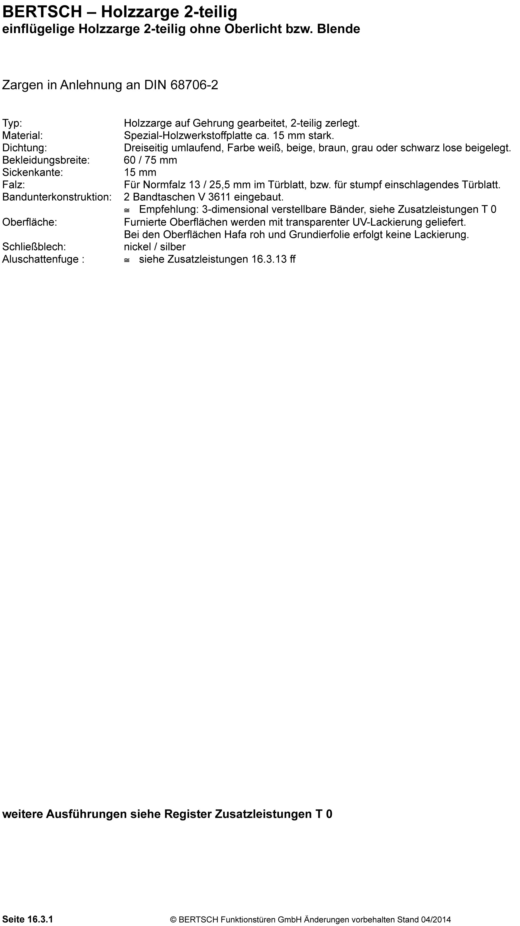 einflügelige Holzzarge 2-teilig ohne Oberlicht bzw. Blende