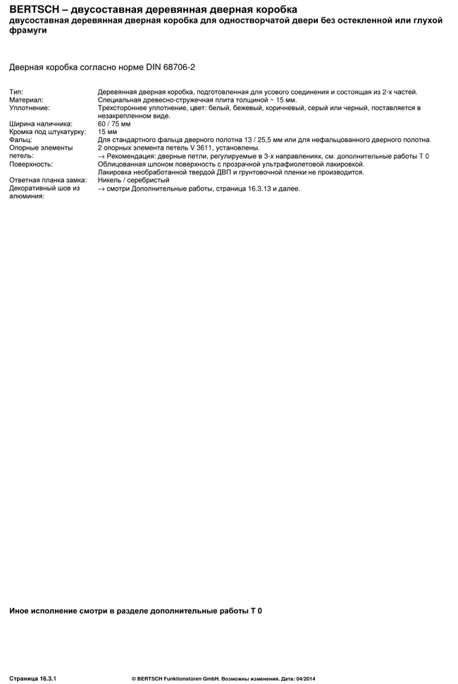 двусоставная деревянная дверная коробка для одностворчатой двери без остекленной или глухой фрамуги