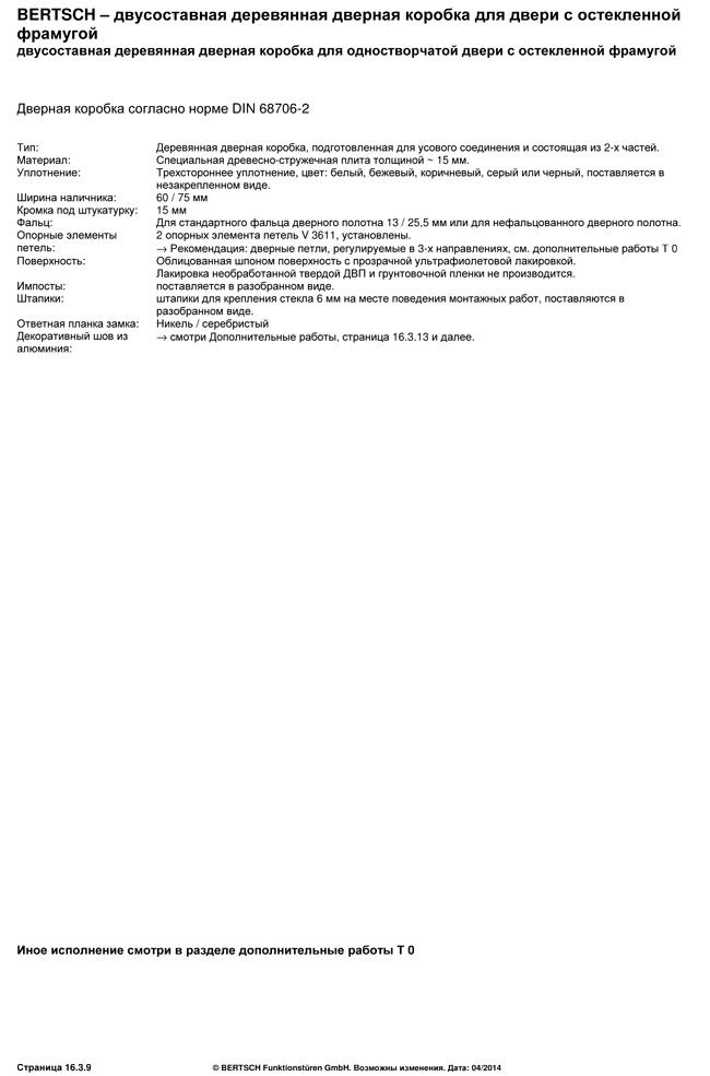 BERTSCH – двусоставная деревянная дверная коробка для двери с остекленной фрамугой