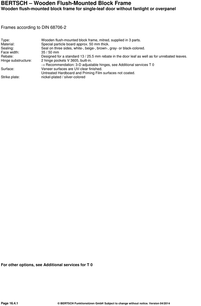 BERTSCH – Wooden Flush-Mounted Block Frame Wooden flush-mounted block frame for single-leaf door without fanlight or overpanel