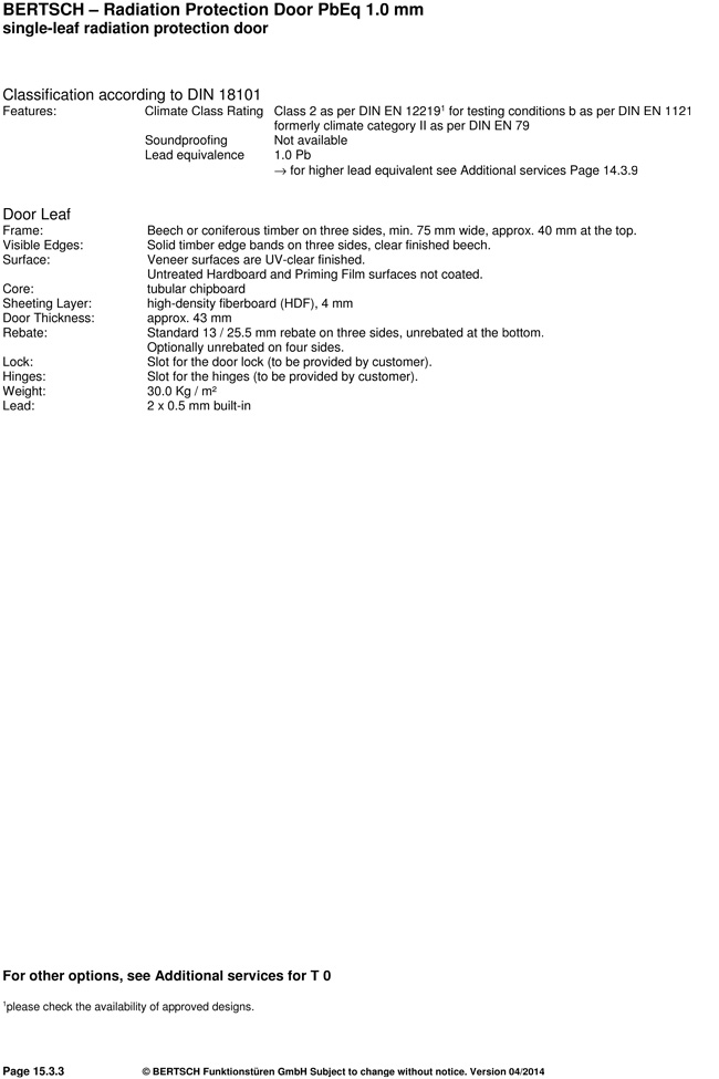 BERTSCH – Radiation Protection Door PbEq 1.0 mm