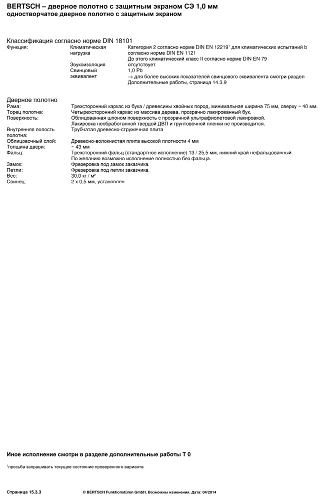 BERTSCH – дверное полотно с защитным экраном СЭ 1,0 мм