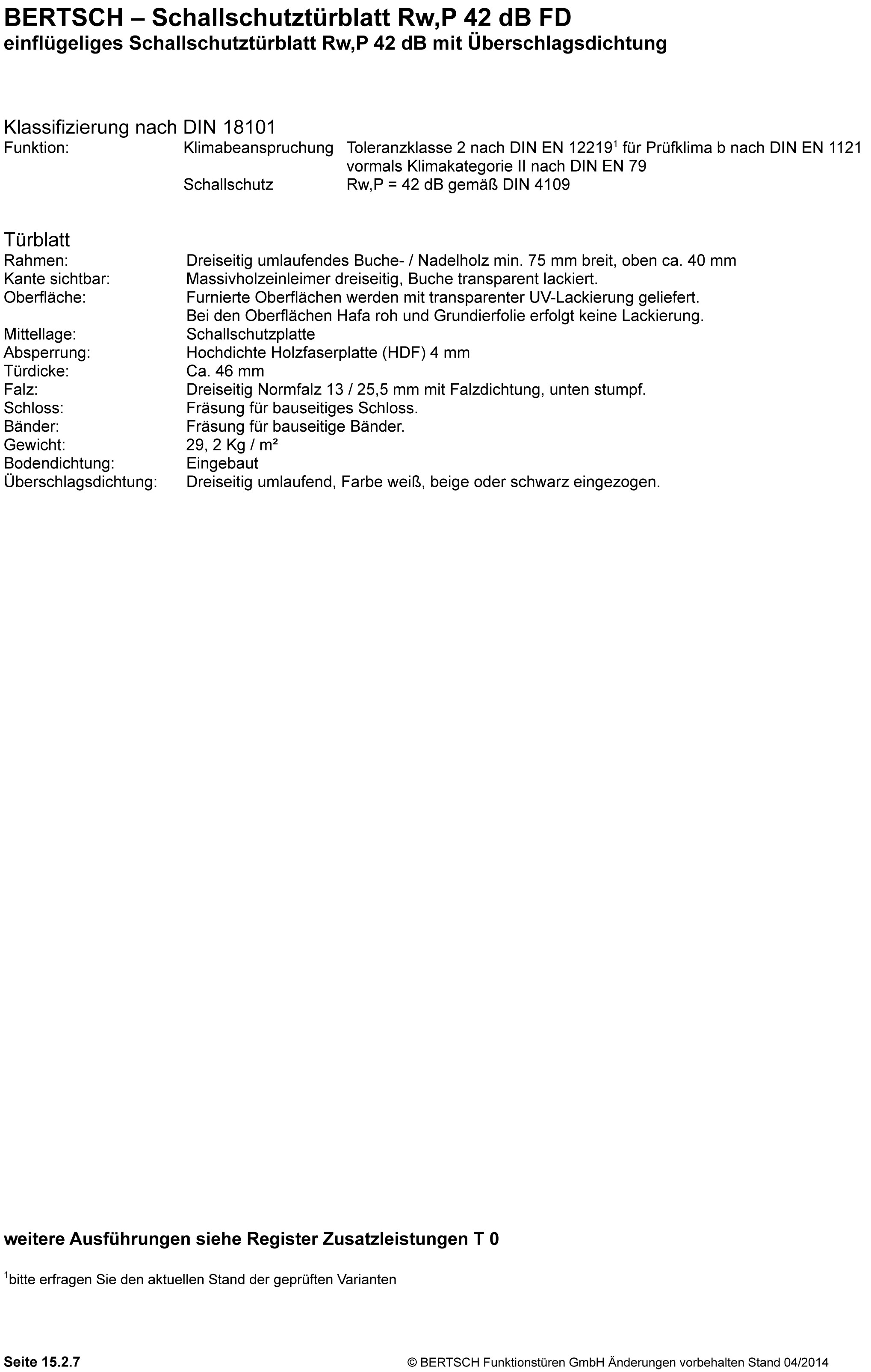 Schallschutztürblatt Rw,P 42 dB FD einflügeliges Schallschutztürblatt Rw,P 42 dB mit Überschlagsdichtung