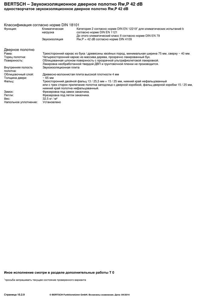 BERTSCH – Звукоизоляционное дверное полотно Rw,P 42 dB