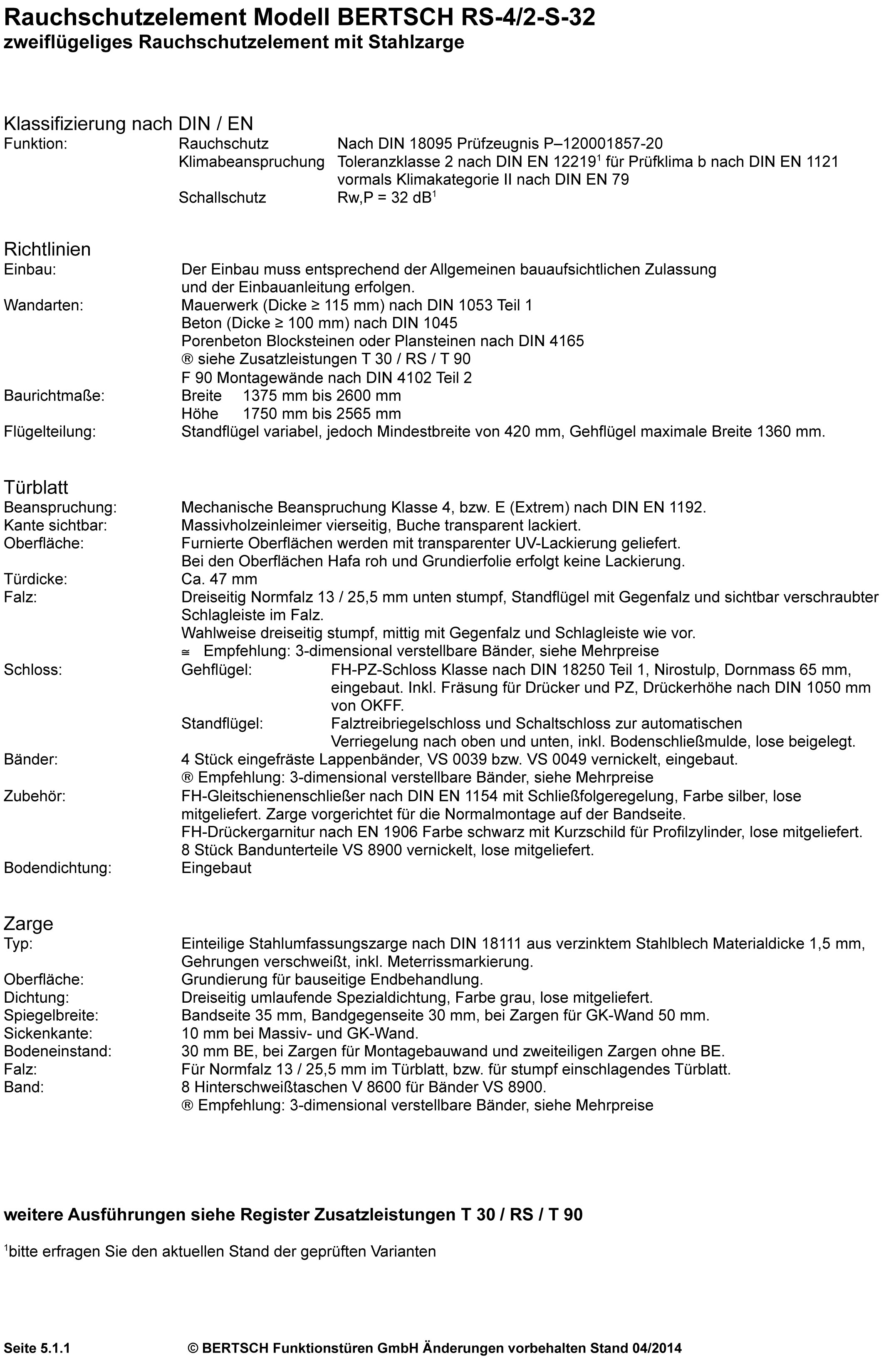 zweiflügeliges Rauchschutzelement mit Stahlzarge