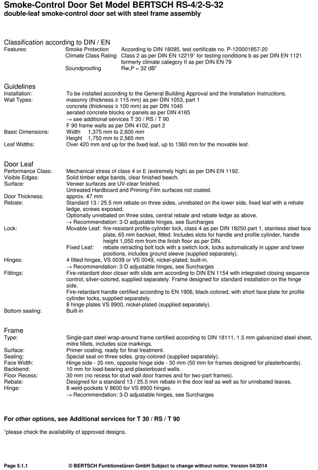 Smoke-Control Door Set Model BERTSCH RS-4/2-S-32 double-leaf smoke-control door set with steel frame assembly