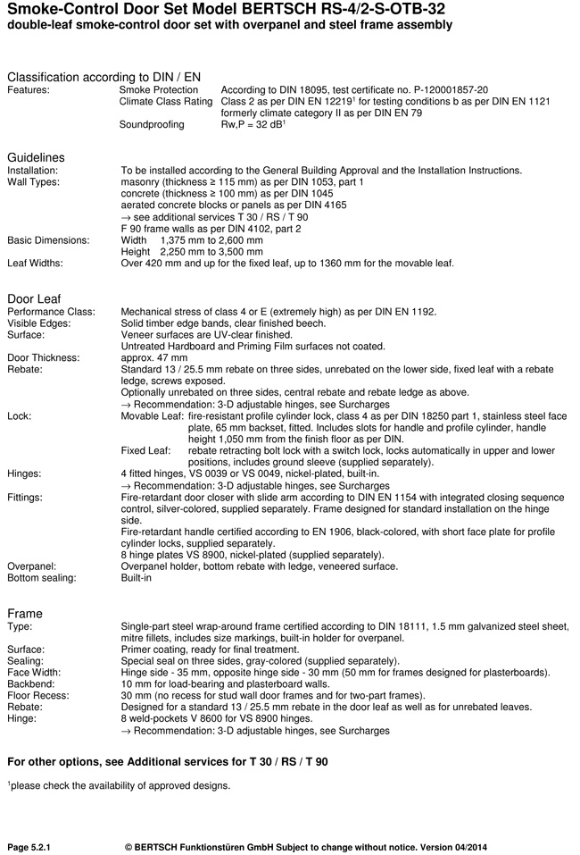 Smoke-Control Door Set Model BERTSCH RS-4/2-S-OTB-32 double-leaf smoke-control door set with overpanel and steel frame assembly