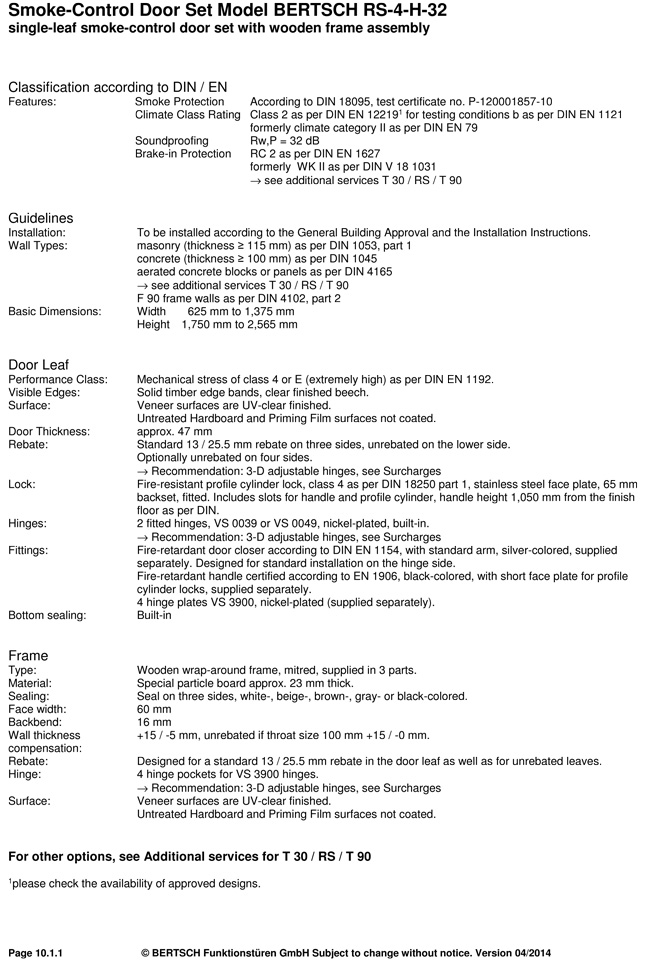 Smoke-Control Door Set Model BERTSCH RS-4-H-32 single-leaf smoke-control door set with wooden frame assembly