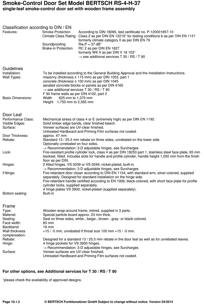 Smoke-Control Door Set Model BERTSCH RS-4-H-37 single-leaf smoke-control door set with wooden frame assembly
