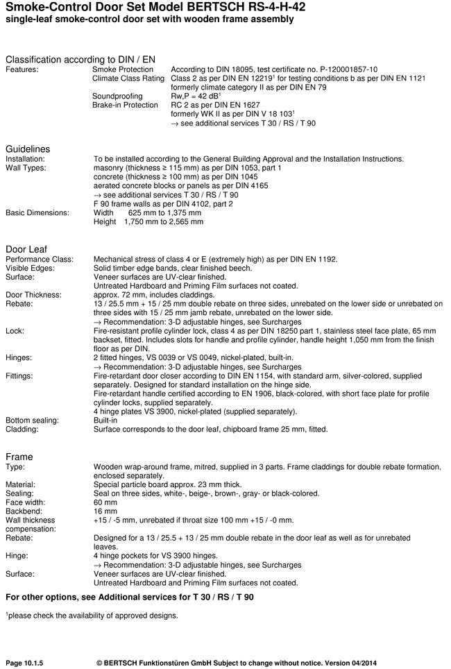 Smoke-Control Door Set Model BERTSCH RS-4-H-42 single-leaf smoke-control door set with wooden frame assembly