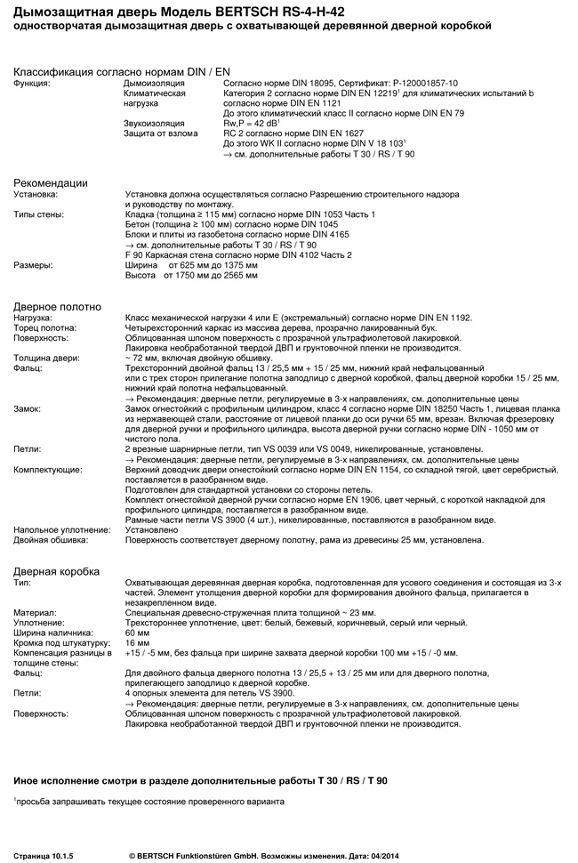 Дымозащитная дверь Модель BERTSCH RS-4-H-42