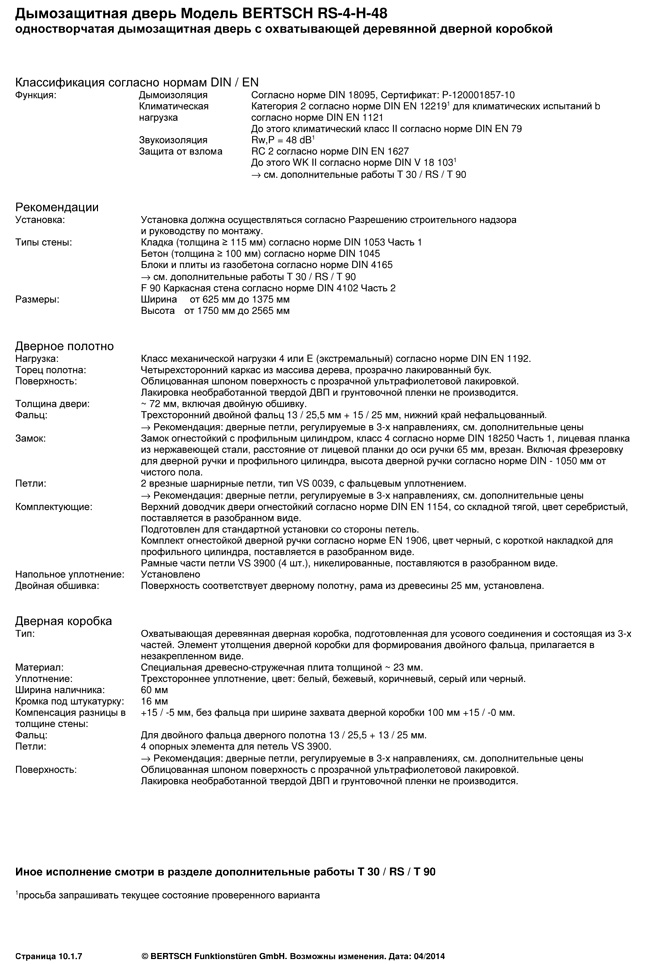 Дымозащитная дверь Модель BERTSCH RS-4-H-48
