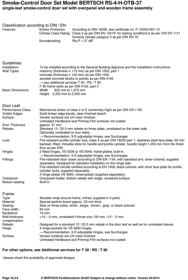 Smoke-Control Door Set Model BERTSCH RS-4-H-OTB-37 single-leaf smoke-control door set with overpanel and wooden frame assembly