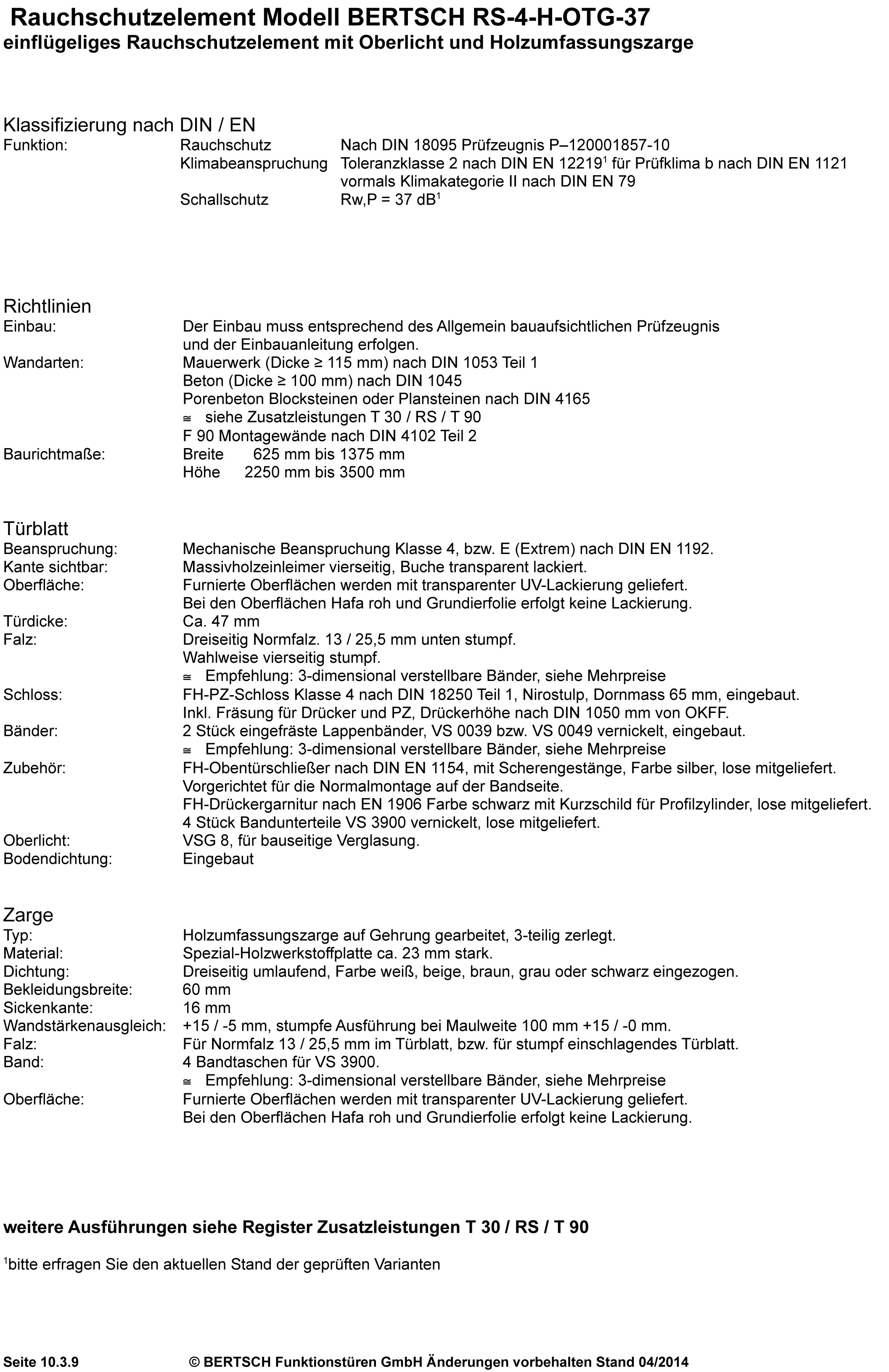 einflügeliges Rauchschutzelement mit Oberlicht und Holzumfassungszarge
