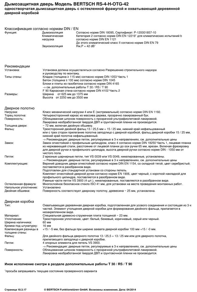 Дымозащитная дверь Модель BERTSCH RS-4-H-OTG-42