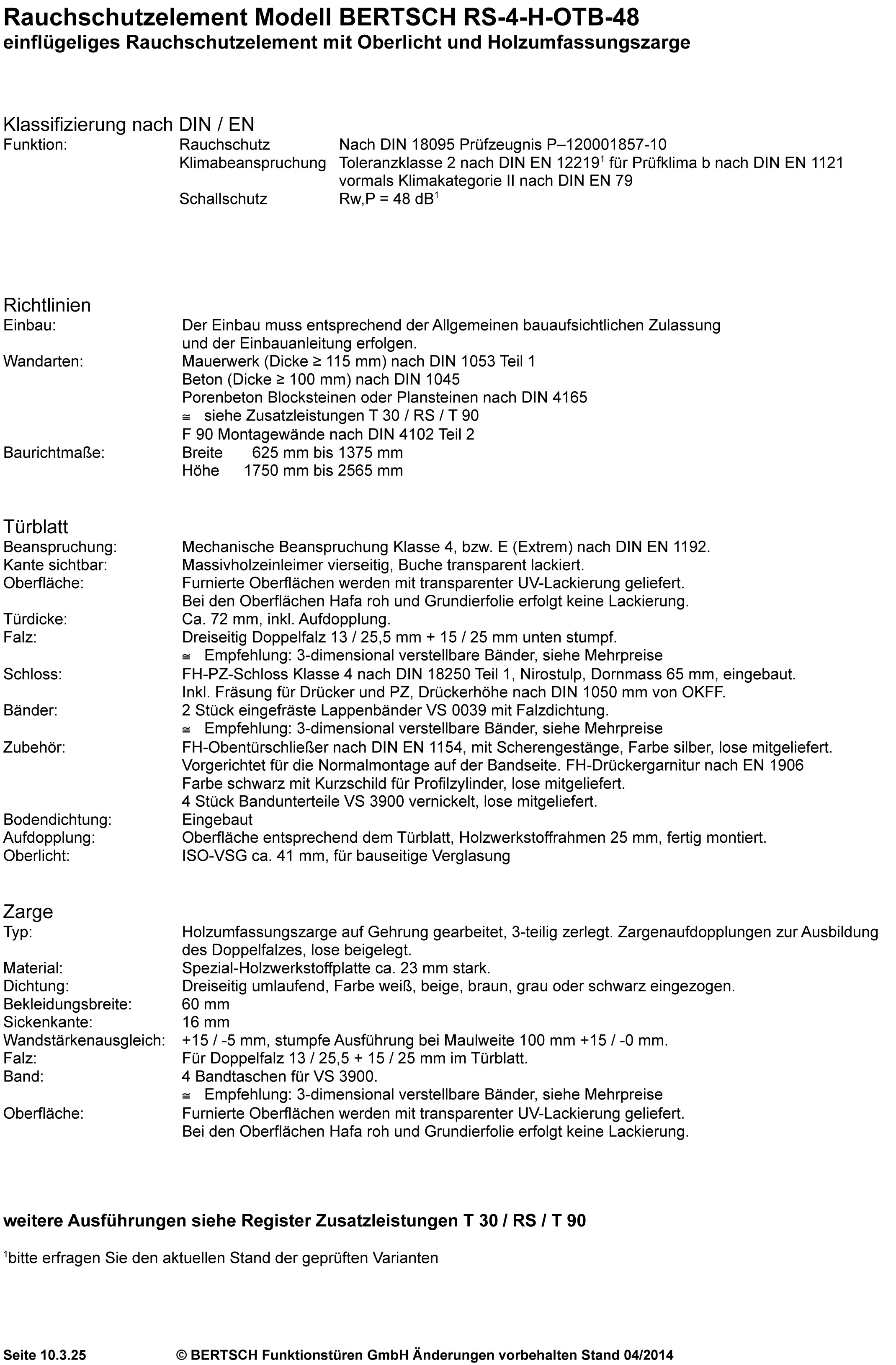 einflügeliges Rauchschutzelement mit Oberlicht und Holzumfassungszarge