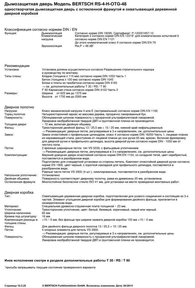 Дымозащитная дверь Модель BERTSCH RS-4-H-OTG-48 одностворчатая дымозащитная дверь с остекленной фрамугой и охватывающей деревянной дверной коробкой