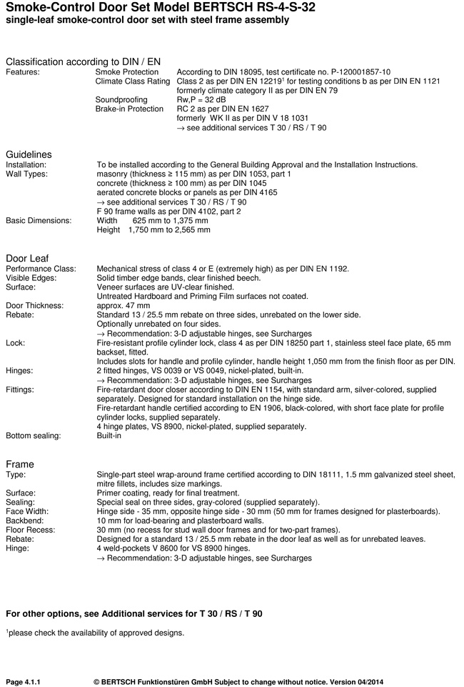 Smoke-Control Door Set Model BERTSCH RS-4-S-32 single-leaf smoke-control door set with steel frame assembly