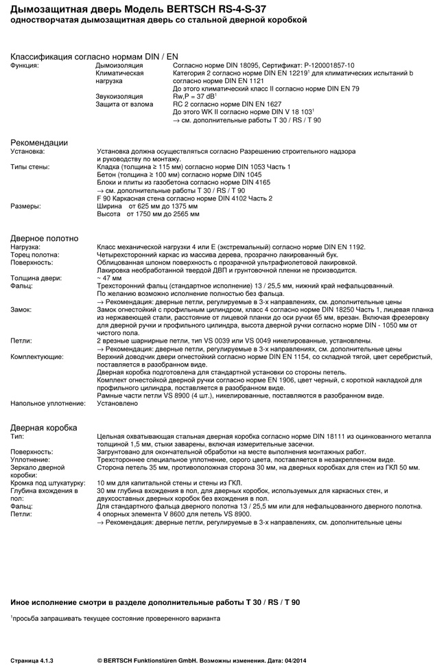 Дымозащитная дверь Модель BERTSCH RS-4-S-37