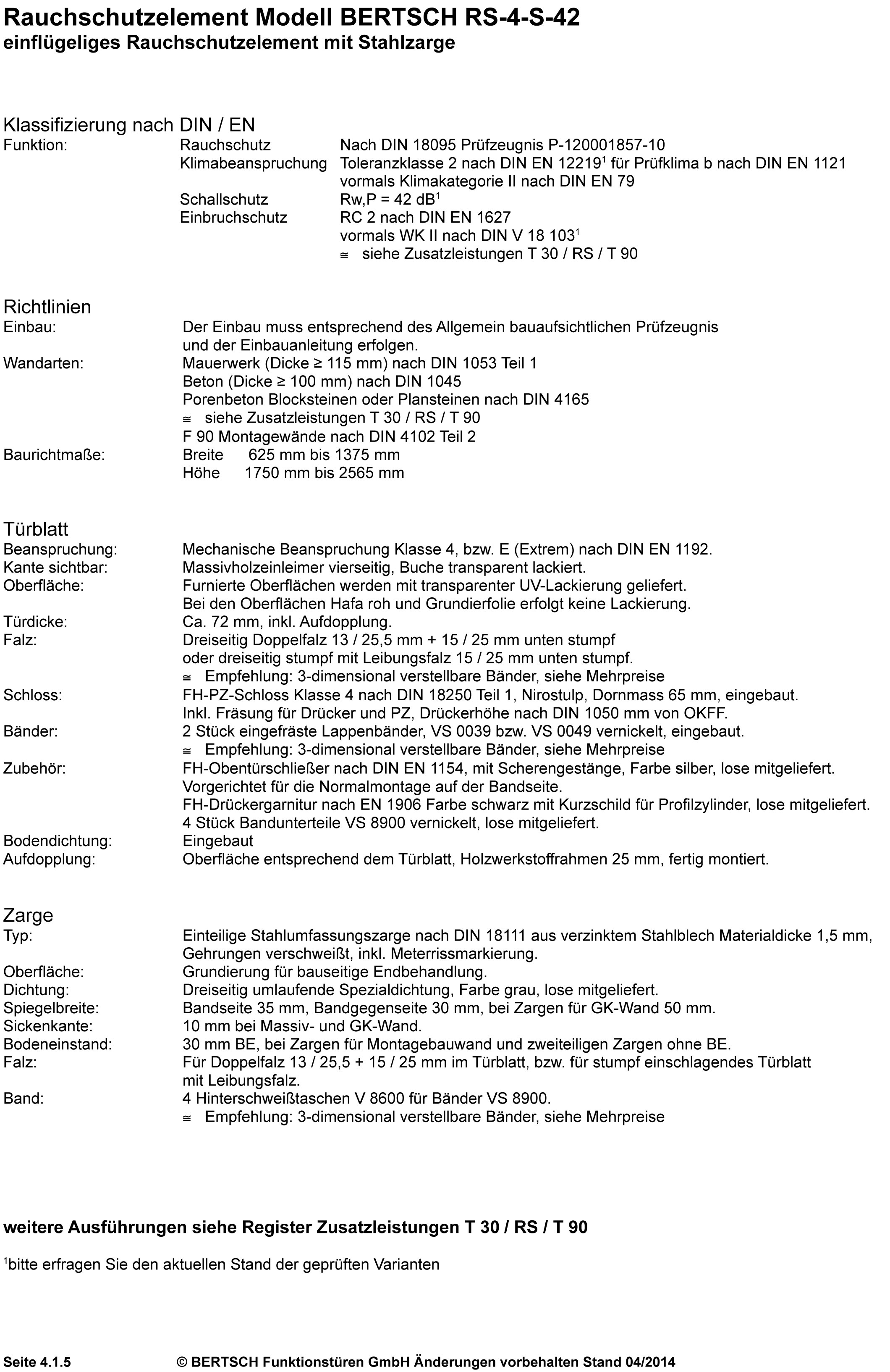 einflügeliges Rauchschutzelement mit Stahlzarge