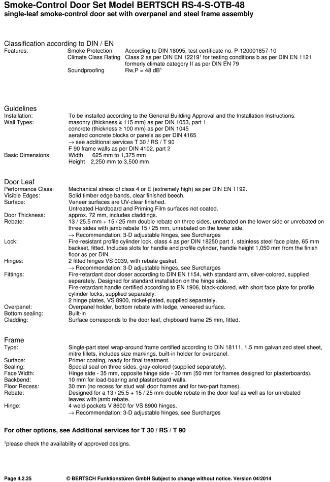 Smoke-Control Door Set Model BERTSCH RS-4-S-OTB-48 single-leaf smoke-control door set with overpanel and steel frame assembly