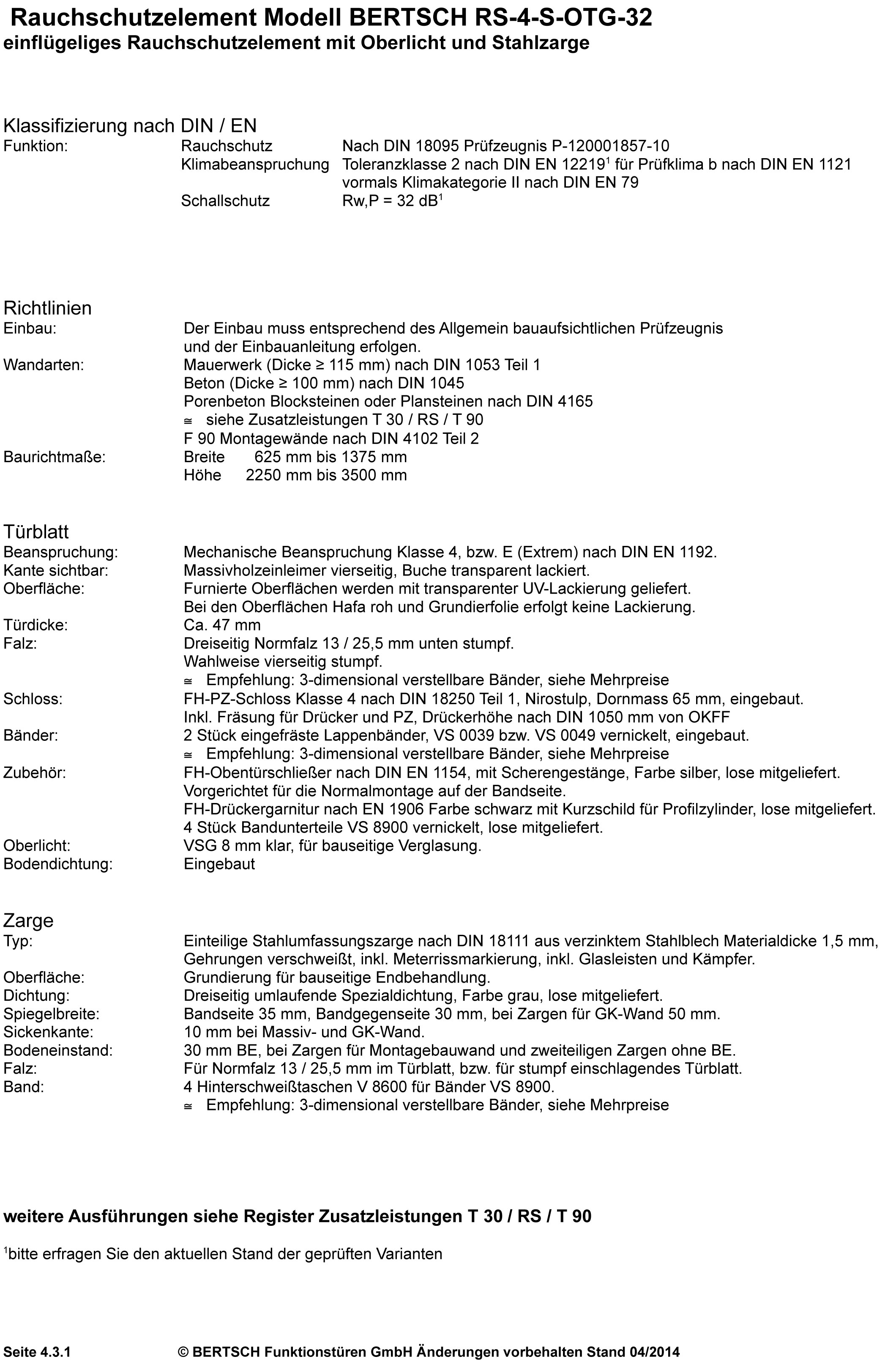 einflügeliges Rauchschutzelement mit Oberlicht und Stahlzarge