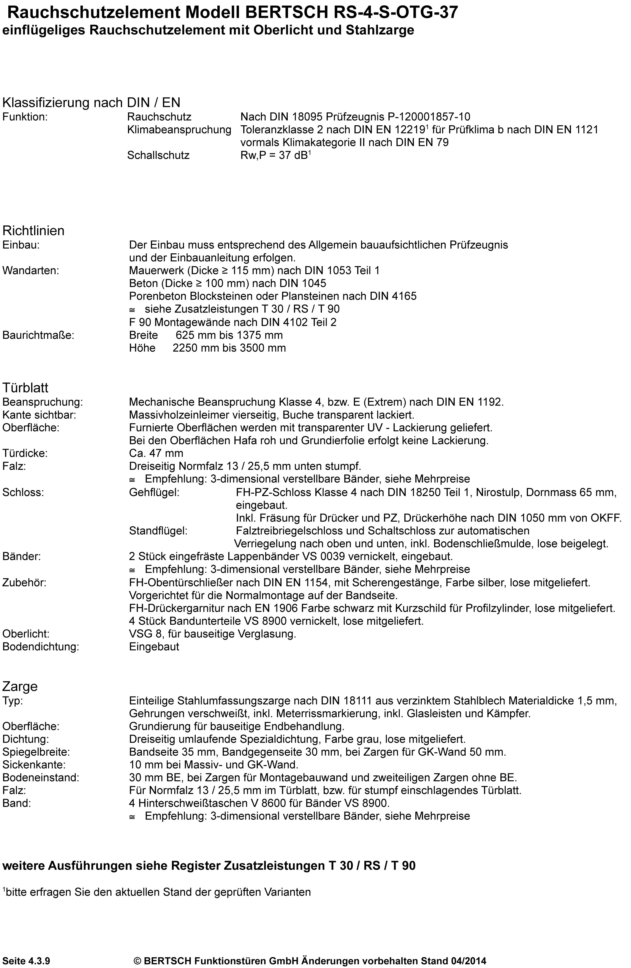 einflügeliges Rauchschutzelement mit Oberlicht und Stahlzarge